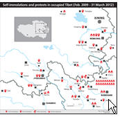 (Map of self-immolations and protests in occupied Tibet *feb 2009 to 31 march 2012* click to enlarge)