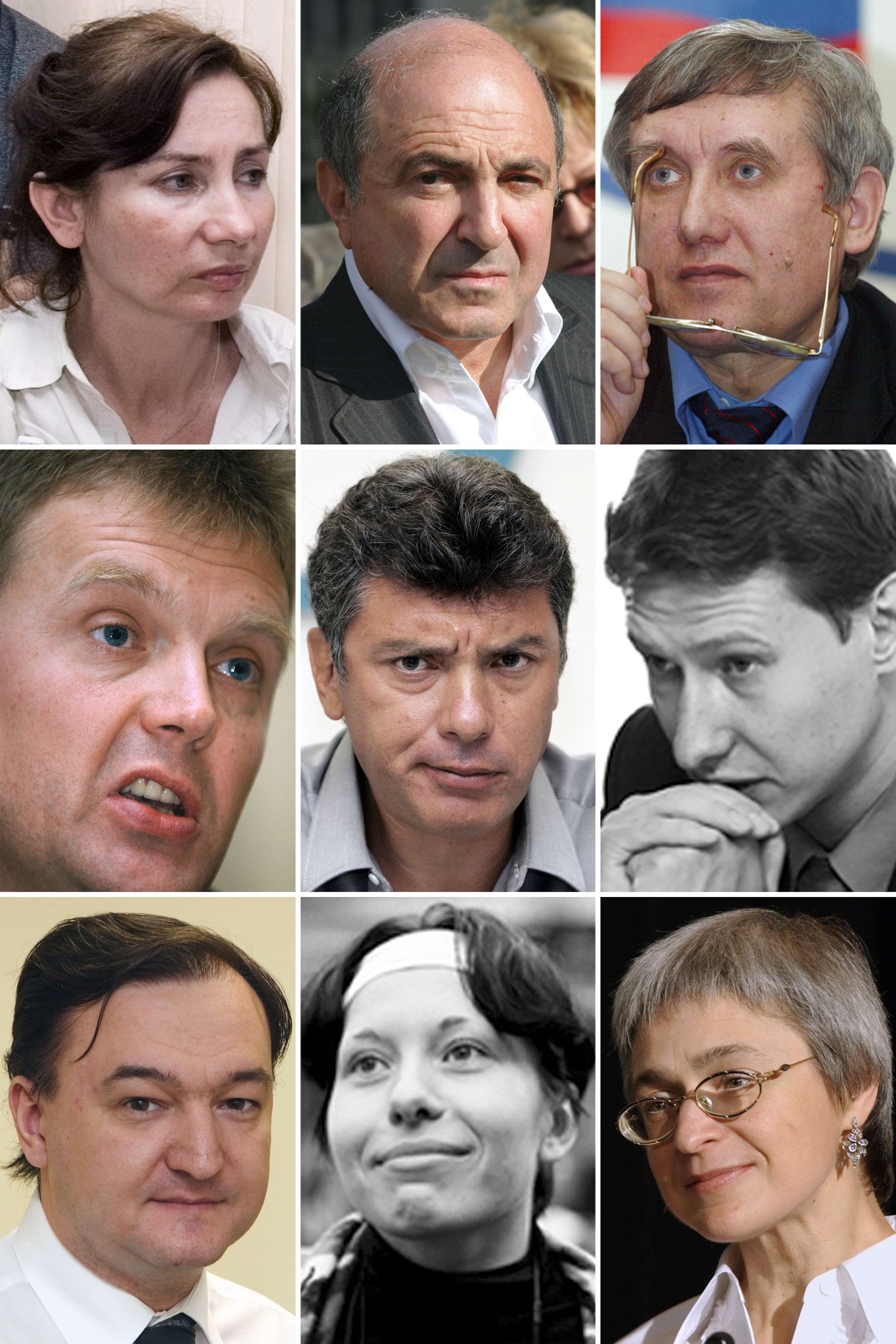 Un per un, els crítics de Putin han estat eliminats. El 2006 la periodista Anna Politkóvskaia va ser abatuda a trets en un ascensor, i Alexander Litvinenko, un exagent del KGB que havia estat crític amb Putin, va morir enverinat per poloni en l'exili a Londres. El 2009 Serguei Magnitski, un advocat de la campanya contra la corrupció, va morir a la presó després d'haver-se-li negat atenció mèdica. El mateix any, un altre advocat, Stanislav Markélov, un líder dels drets humans, va ser assassinat després d'una conferència de premsa.